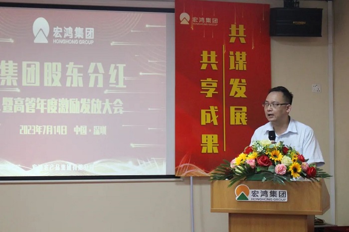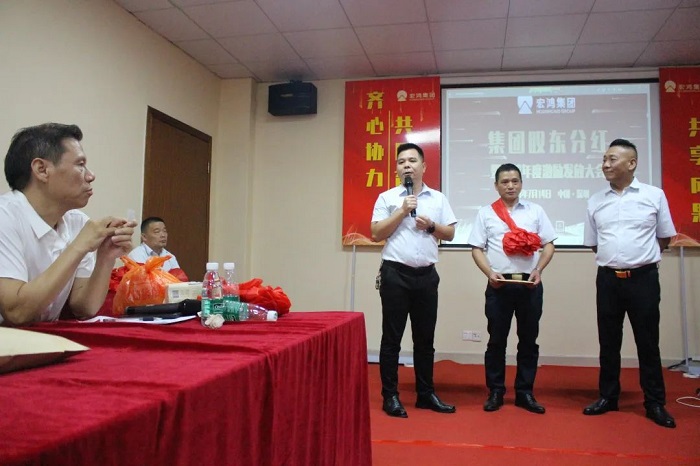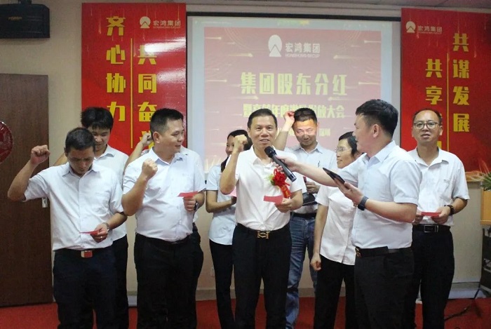 宏鴻作為經(jīng)營(yíng)穩(wěn)健、發(fā)展前景廣闊的好公司,廣大員工、內(nèi)外部合伙人認(rèn)可和信任的好平臺(tái),謀發(fā)展、有擔(dān)當(dāng)、敢分享的好企業(yè),舉辦這場(chǎng)“集團(tuán)股東分紅暨高管年度激勵(lì)發(fā)放”大會(huì),旨在分享宏鴻人在過去一年的豐碩成果,我們共同詮釋了集團(tuán)關(guān)愛員工、與員工共同發(fā)展、共同分享的文化內(nèi)涵。未來,我們也將用昂揚(yáng)斗志和真抓實(shí)干,在各自的崗位上發(fā)光發(fā)熱,為集團(tuán)的大發(fā)展共同努力和奮斗!